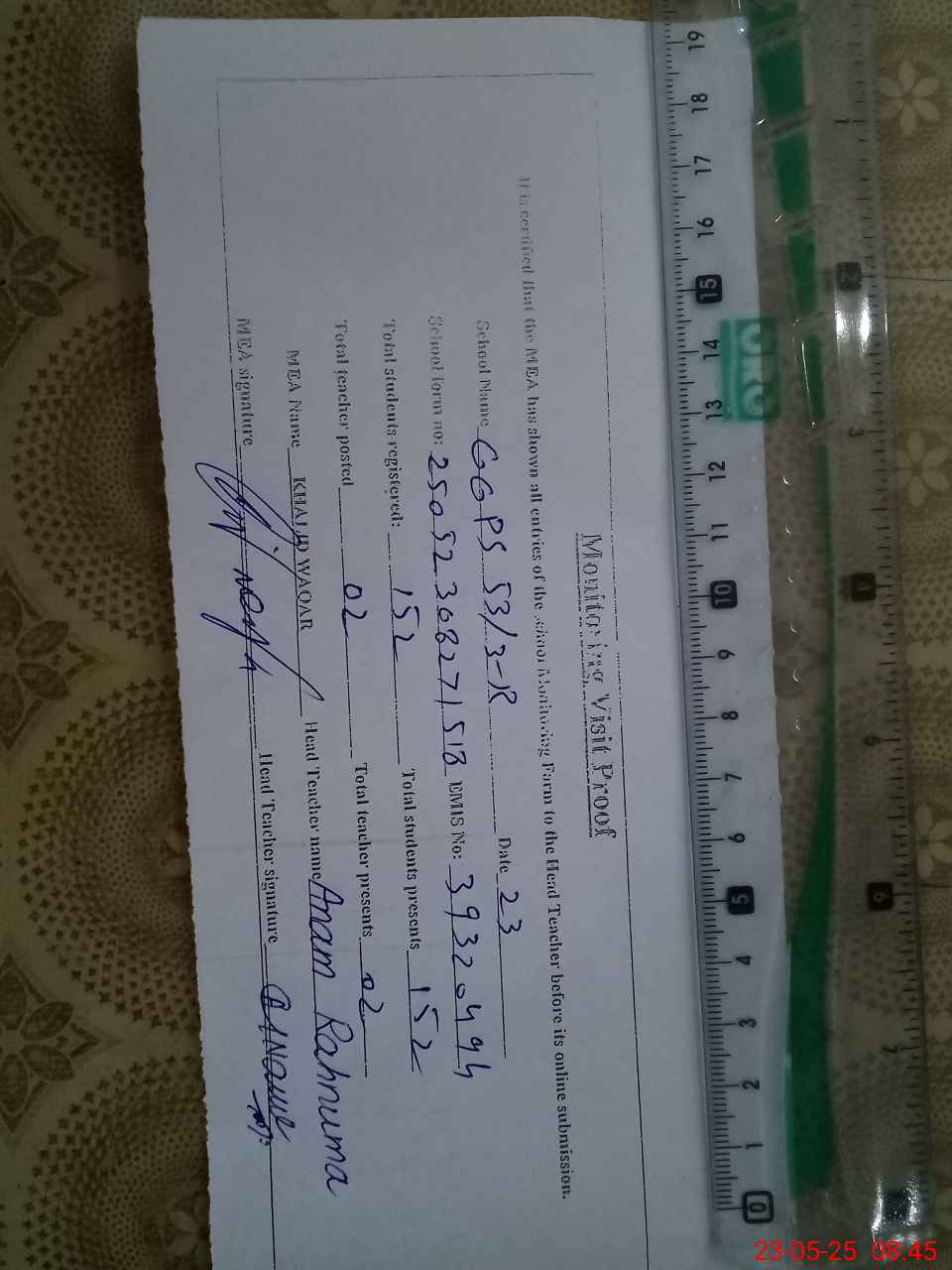 | Monitoring Date: 23-05-2025 | Start Time: 23-05-2025 08:26 AM | End Time: 23-05-2025 08:45 AM | Name of MEA: KH**** WA**** | |