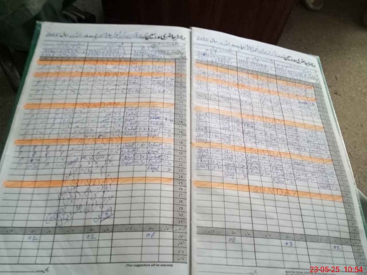 | CNIC | Full Name | Designation | R/C | Absence During Last Calender Month |