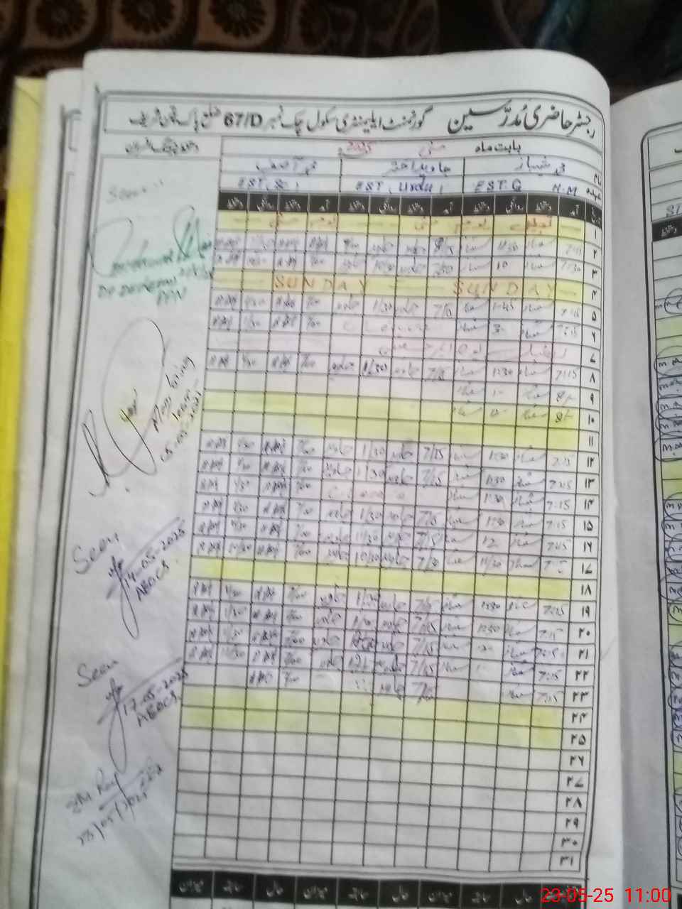 | CNIC | Full Name | Designation | R/C | Absence During Last Calender Month |