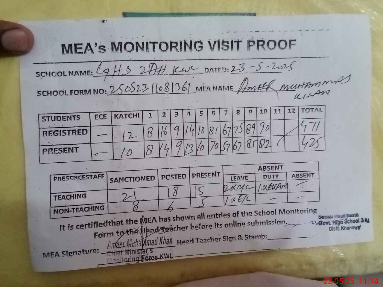 | EMIS Code: 36420017 | Name of School: GHS 2/AH, 5/AH, KHANEWAL | |||