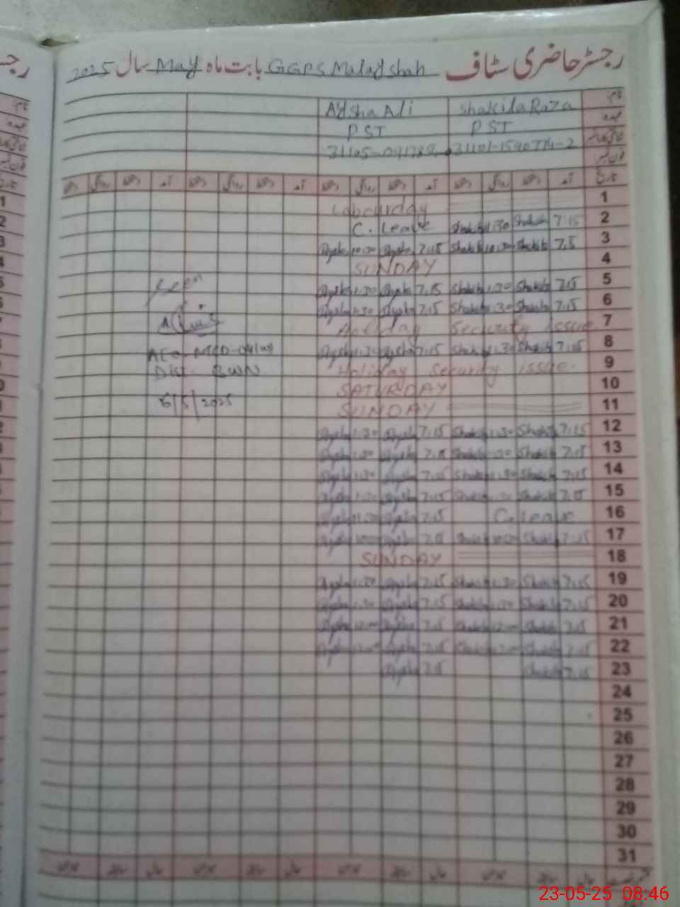 | Name: Ay**** Al**** Designation: (School Headmaster's/Headmistress's) PST Phone/Cell Number: 03**** |
