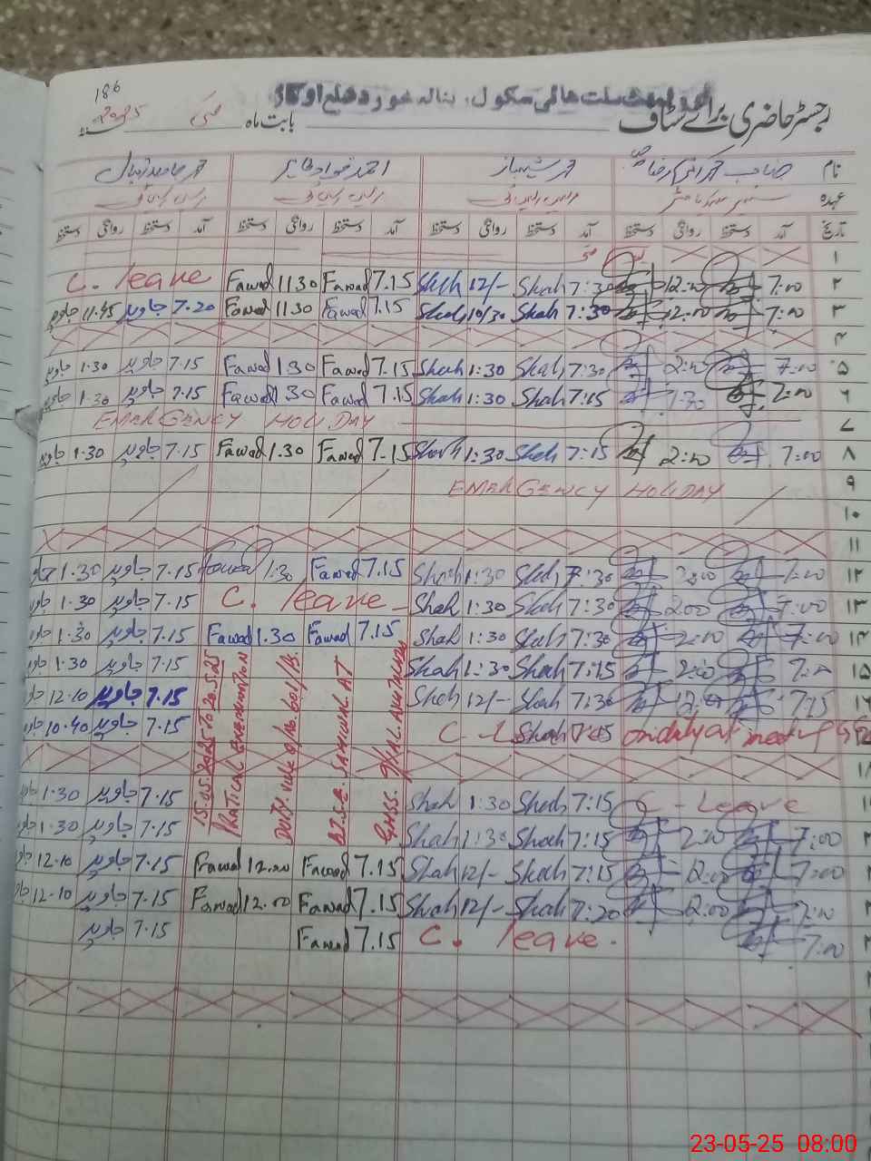 | CNIC | Full Name | Designation | R/C | Absence during last cal. month |