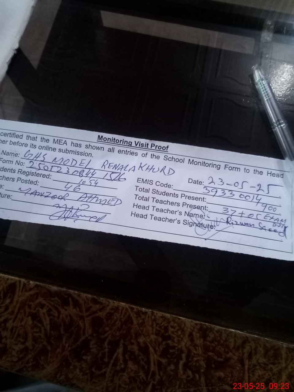 | EMIS Code: 39330014 | Name of School: GHS MODEL RENALA KHURD | |||
