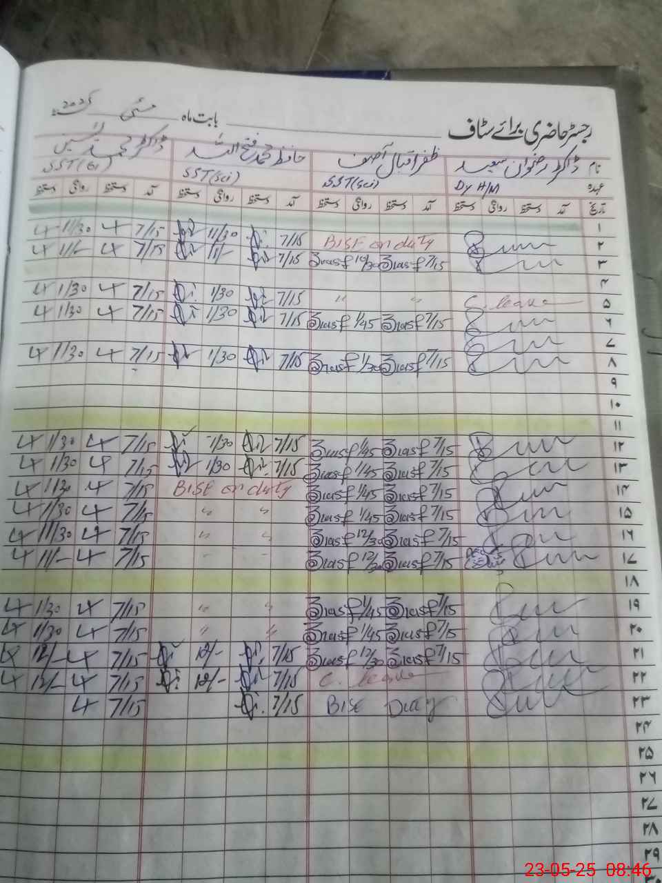 | 35**** | Am**** Ta**** | SST | Regular | 0 | 0 | 0 | 0 | 0 | 0 | 0 | 0 | 0 | Exam Duty |