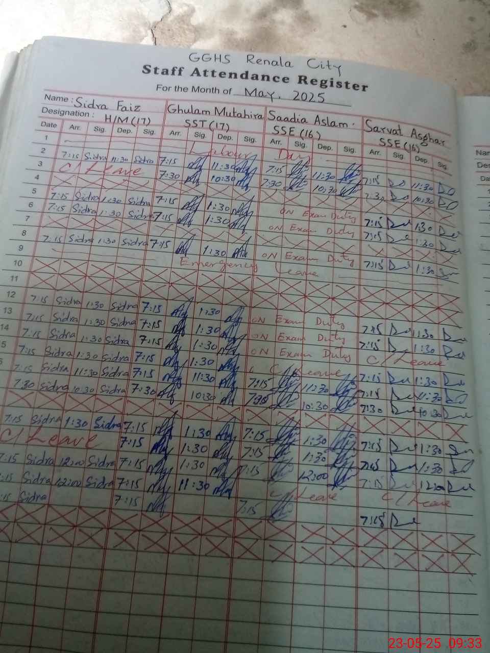 | 35**** | Ro**** Sh**** | 1 | 1 | 0 | 0 | 0 | 0 | 0 | 0 | 0 | 0 | 0 | Exam Duty |