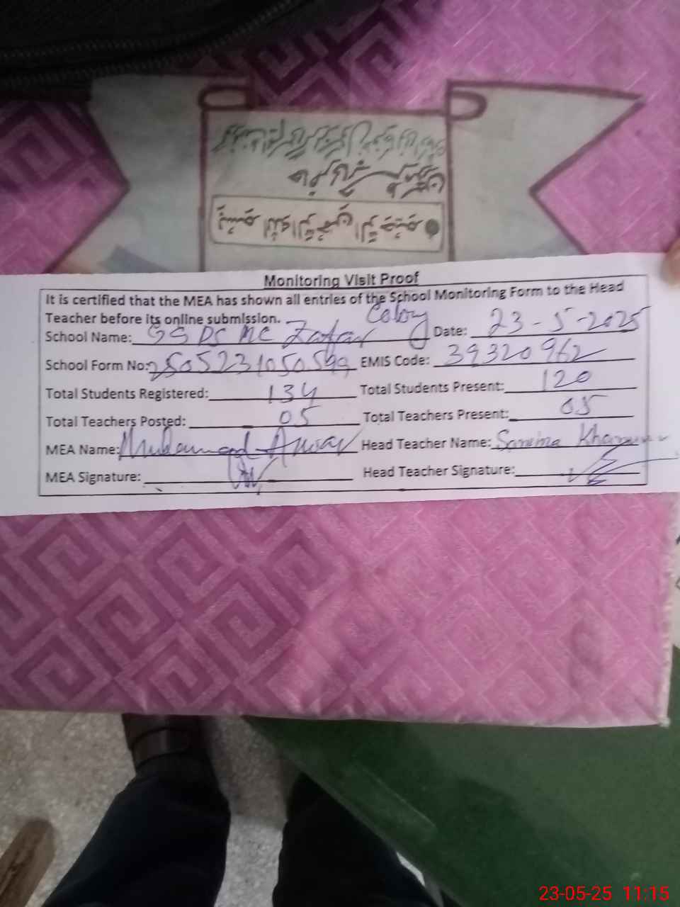 | EMIS Code: 39320962 | Name of School: GGPS MC ZAFAR COLONY | |||
