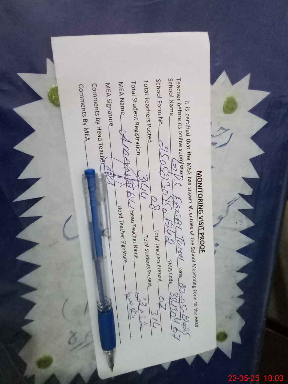 | EMIS Code: 35430467 | Name of School: GPS FAISAL TOWN | |||
