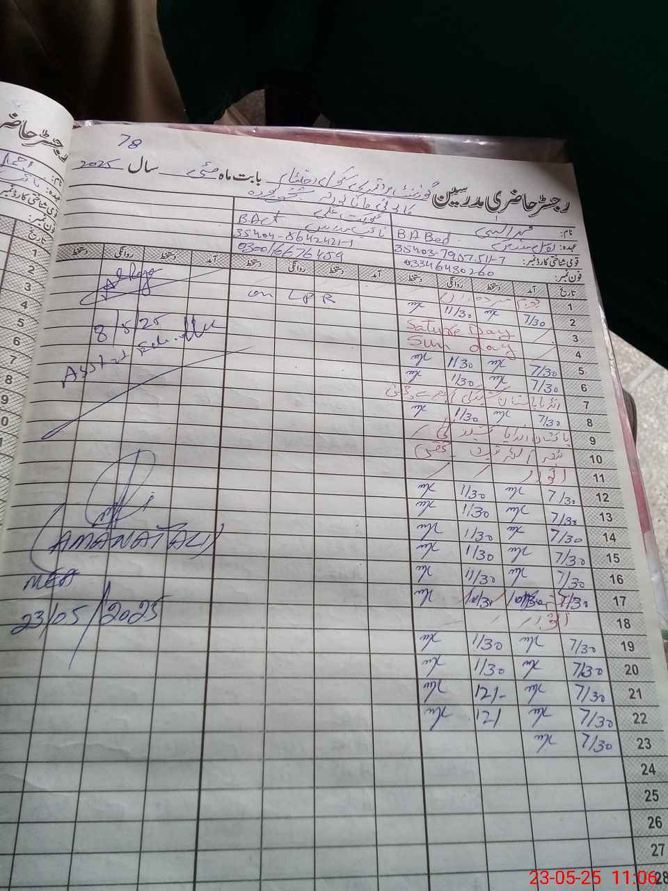 | CNIC | Full Name | Designation | R/C | Absence During Last Calender Month |