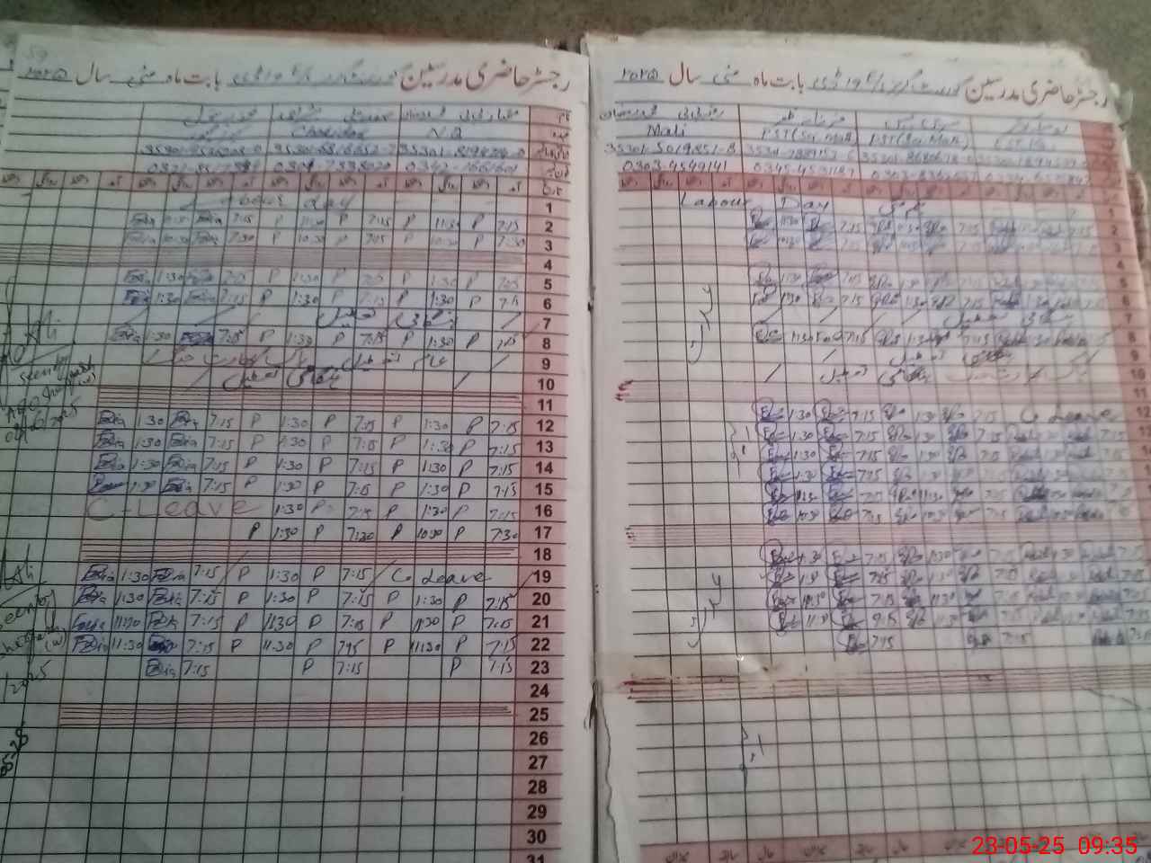 | CNIC | Full Name | Designation | R/C | Absence During Last Calender Month |