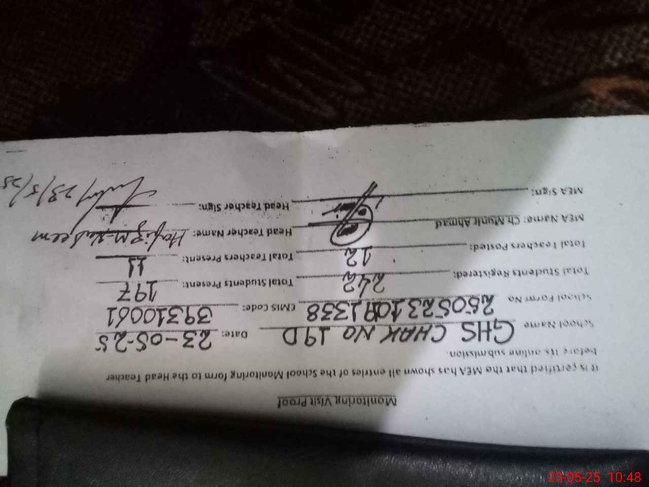 | Certified that this School was Inspected by the Undersigned MEA/DMO Today and the Information Stated Above is as Per Record. | |||||