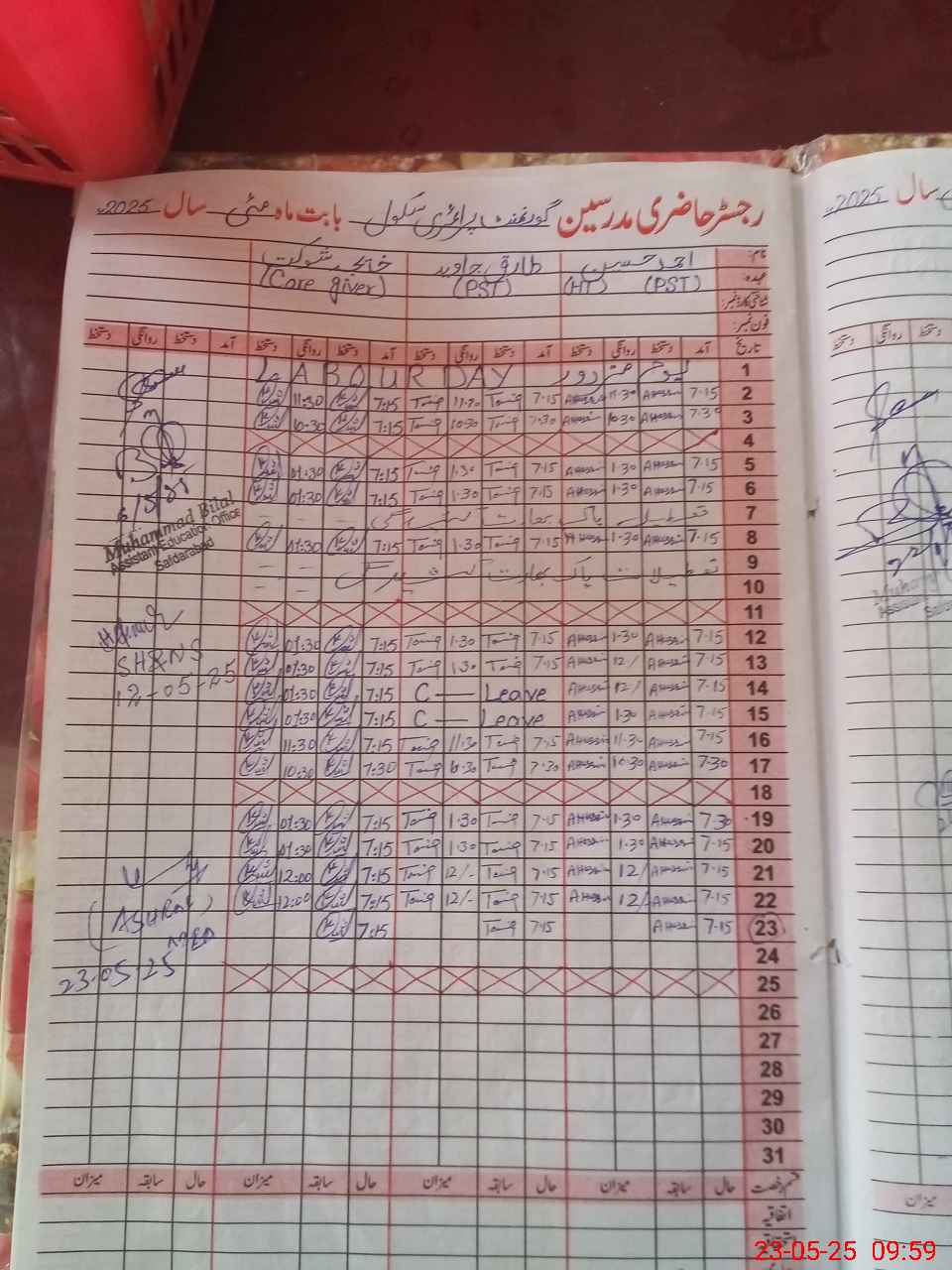 | CNIC | Full Name | Designation | R/C | Absence During Last Calender Month |