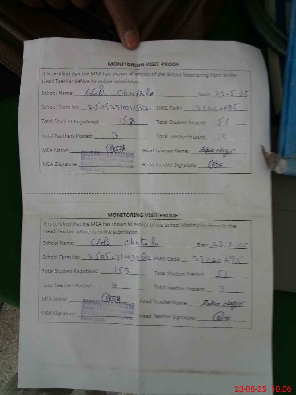 | EMIS Code: 33220695 | Name of School: GGPS CHUTALA | |||