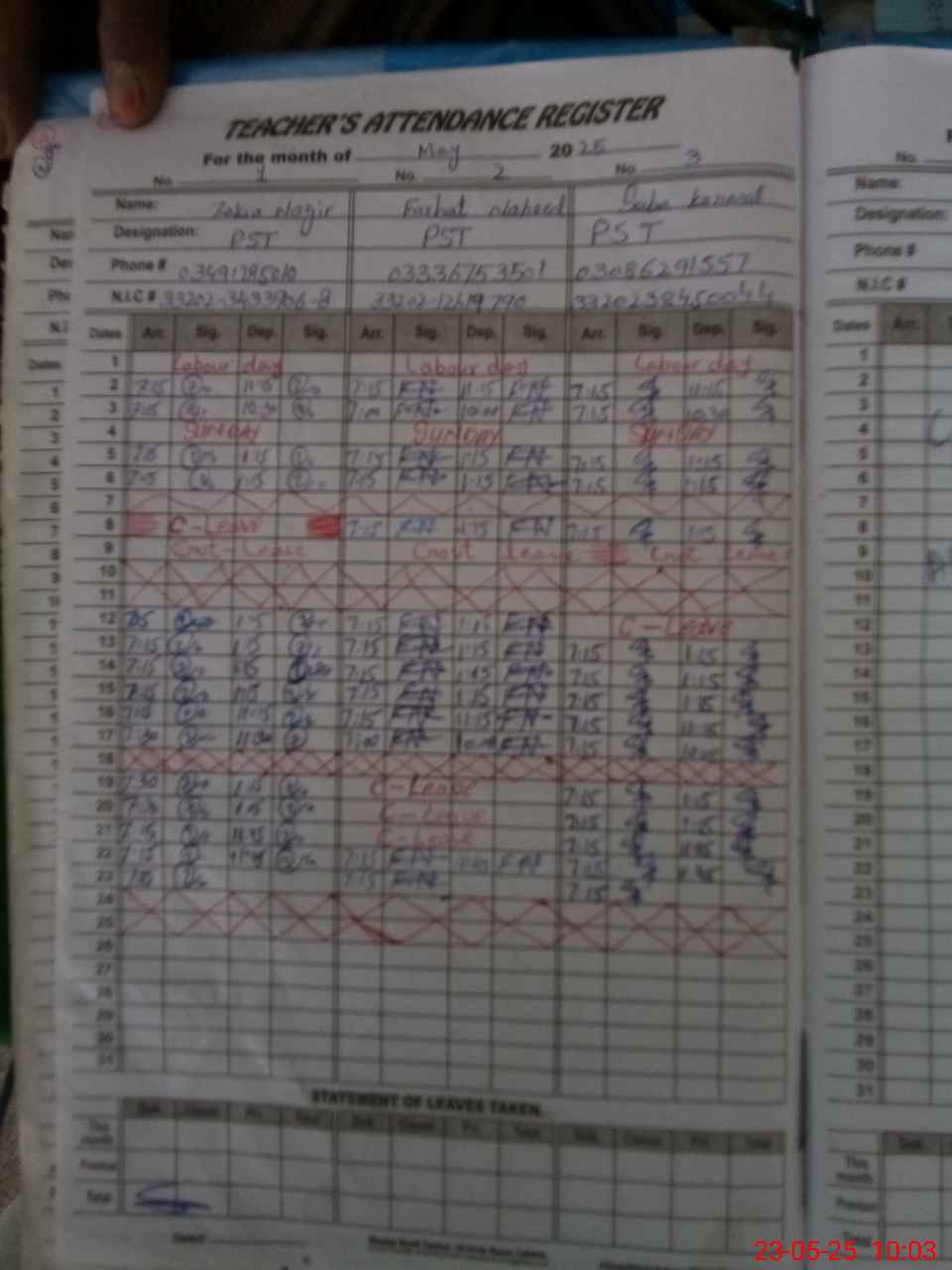 | Name: ZA**** NA**** Designation: (School Headmaster's/Headmistress's) PST Phone/Cell Number: 03**** |