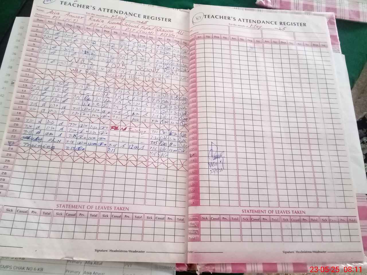 | Name: AS**** AN**** Designation: (School Headmaster's/Headmistress's) PST Phone/Cell Number: 03**** |