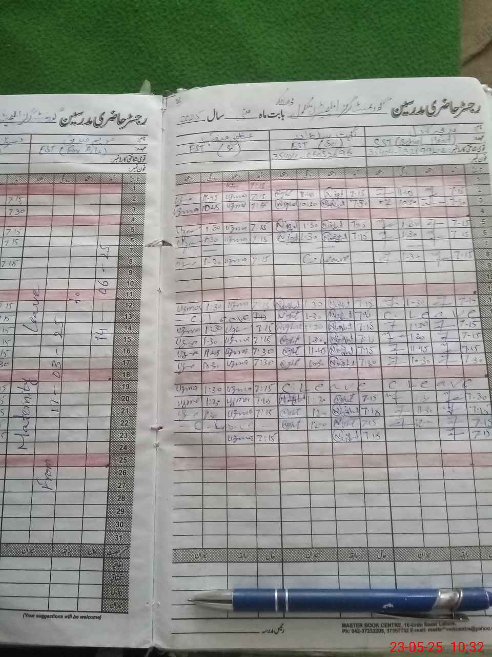 | Leave | Duty | Absent | Maternity | Medical | Ex- Pak |