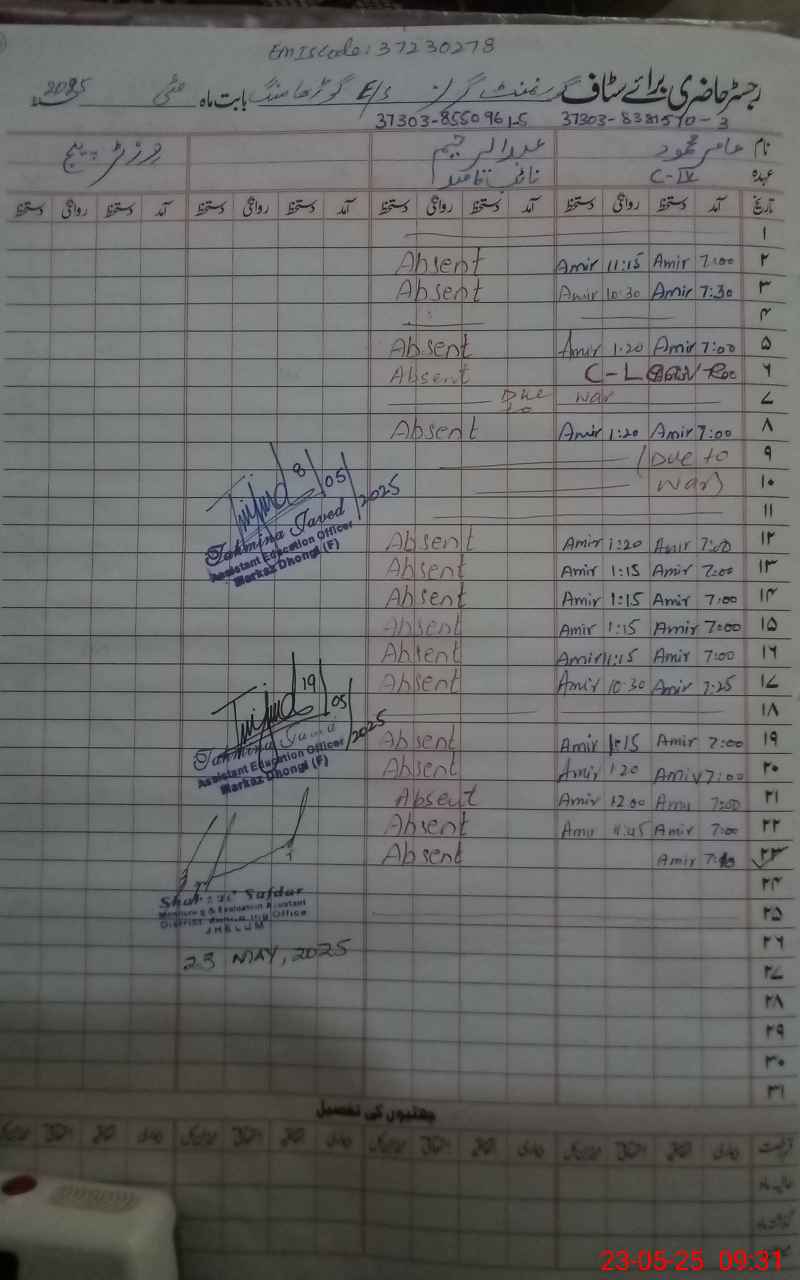 | 37**** | Ab**** Ra**** | NQ | 0 | 0 | 30 | 0 | 0 | 0 | 0 | 0 | 0 | Absent (Un-Authorized) | |