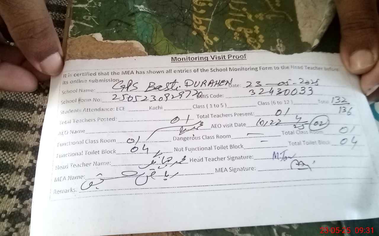 | EMIS Code: 32430033 | Name of School: GPS BASTI DURAHEN | |||