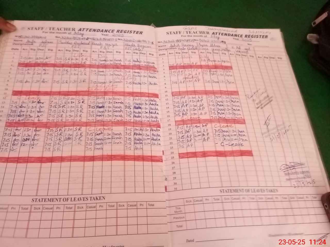 | Leave | Duty | Absent | Maternity | Medical | Ex- Pak |