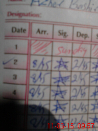 | Monitoring Date: 11-03-2015 | Start Time: 11-03-2015 09:29 AM | End Time: 11-03-2015 10:03 AM | Name of MEA: Mu**** Ak**** | |