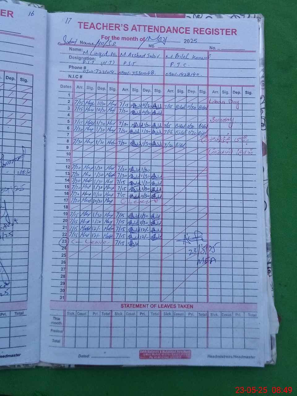 | Name: Li**** Al**** Designation: (School Headmaster's/Headmistress's) PST Phone/Cell Number: 03**** |
