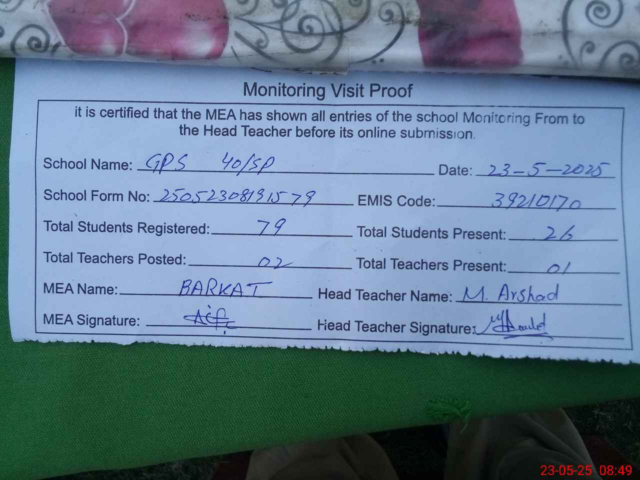 | EMIS Code: 39210170 | Name of School: GPS 40 SP | |||