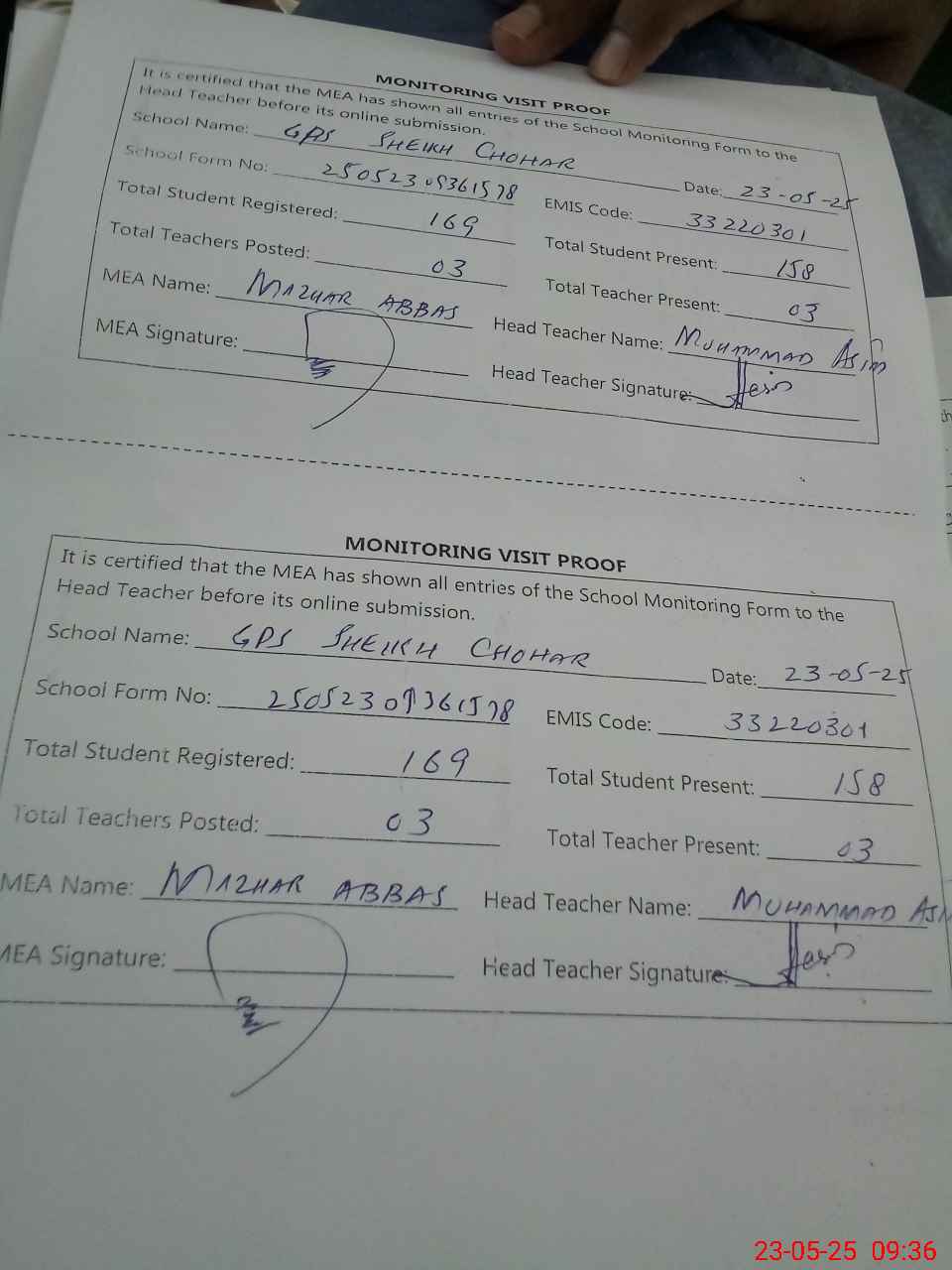 | EMIS Code: 33220301 | Name of School: GPS SHEIKH CHOHAR | |||