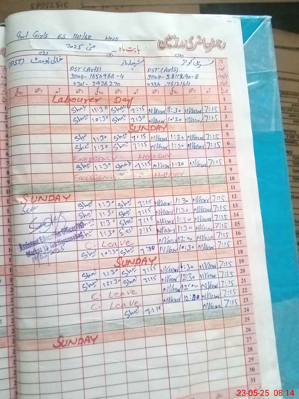 | Name: TA**** KO**** Designation: (School Headmaster's/Headmistress's) S.S T (GEN) Phone/Cell Number: 03**** |