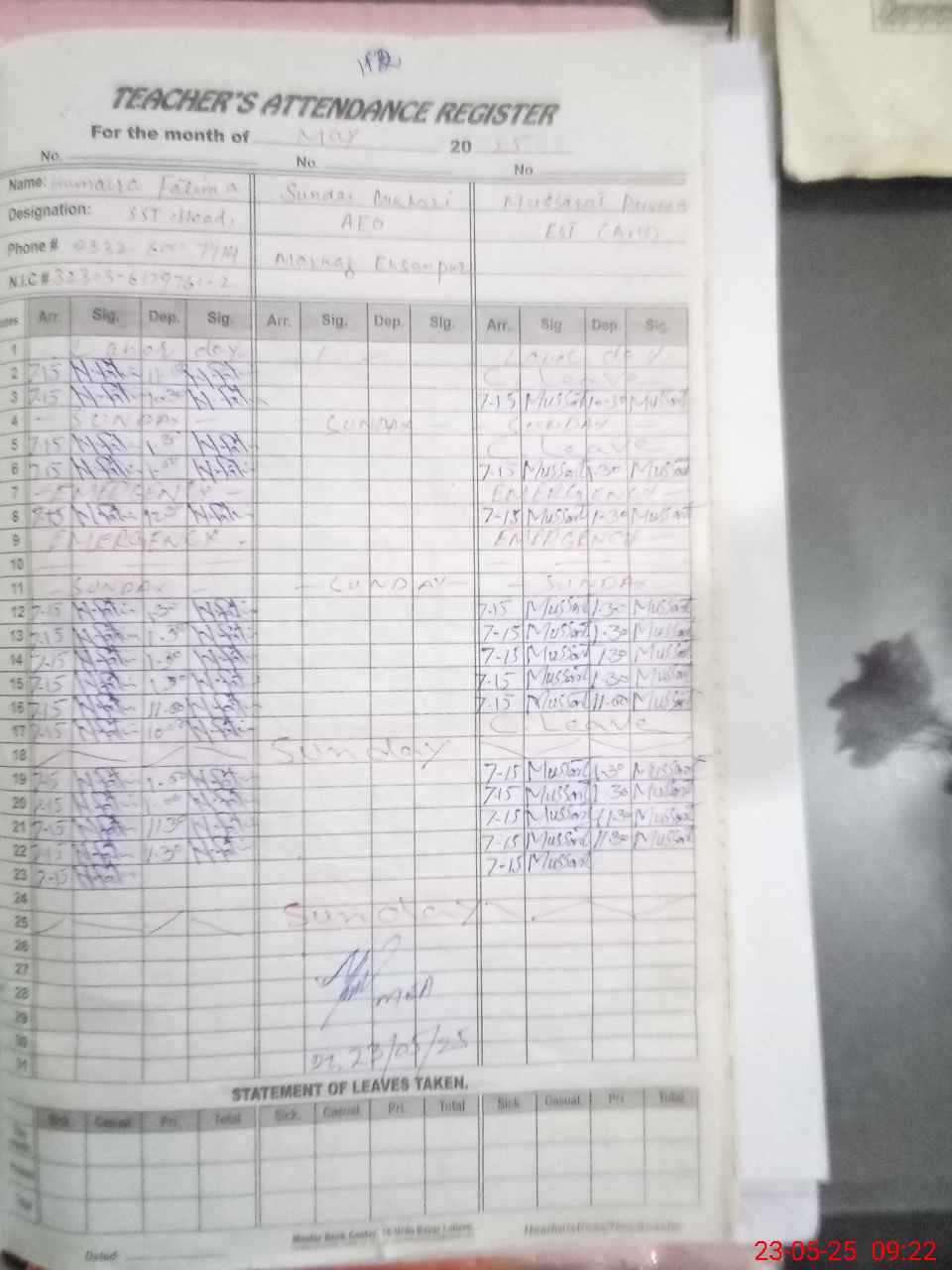 | Name: Hu**** Fa**** Designation: (School Headmaster's/Headmistress's) SSt Phone/Cell Number: 03**** |