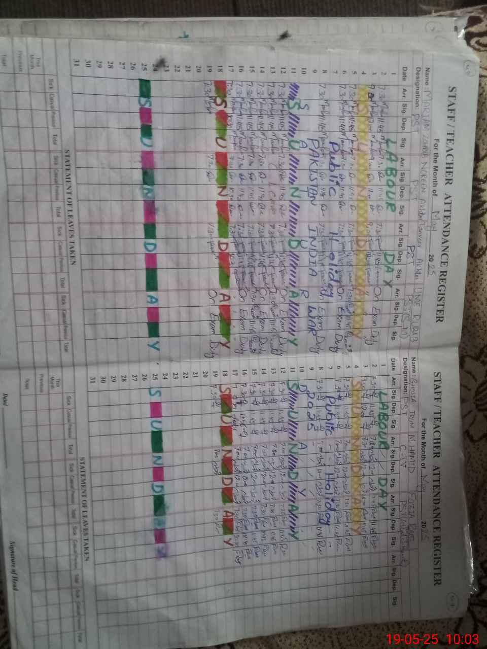 | Leave | Duty | Absent | Maternity | Medical | Ex- Pak |