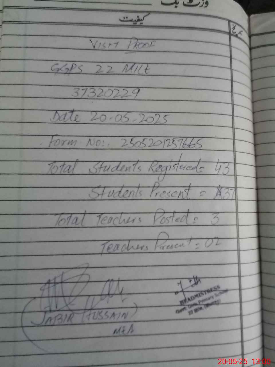 | Name: MA**** HA**** Designation: (School Headmaster's/Headmistress's) PST Phone/Cell Number: 03**** |