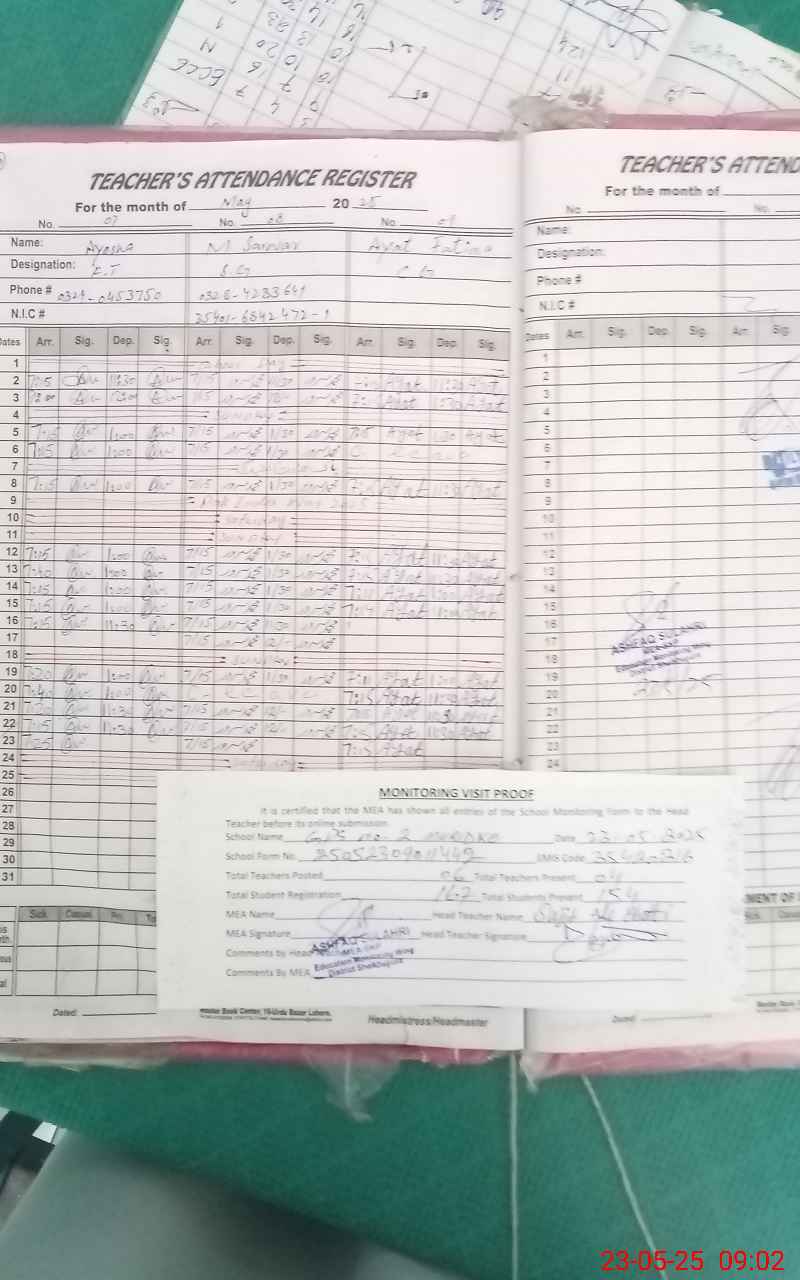 | Attendance Register | Head Teacher | MEA with School | Visit Proof |