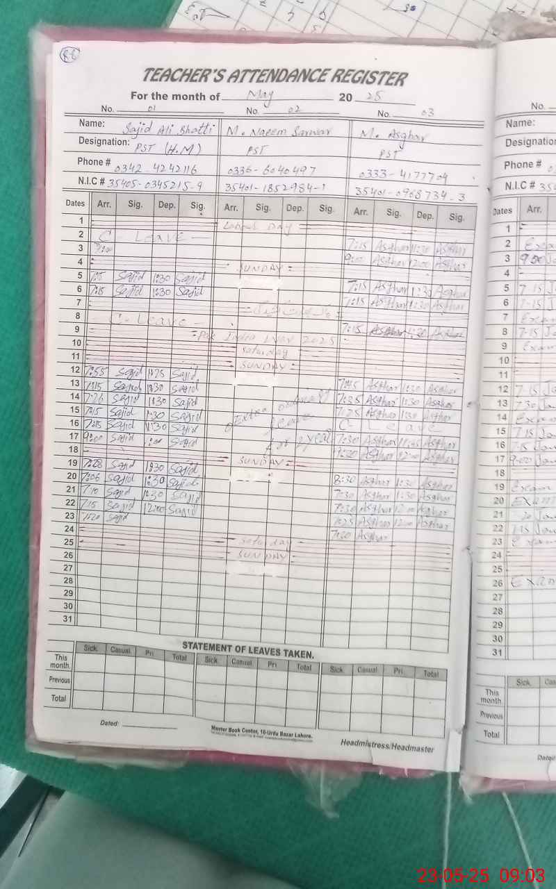 | Name: SA**** AL**** Designation: (School Headmaster's/Headmistress's) PST Phone/Cell Number: 03**** |