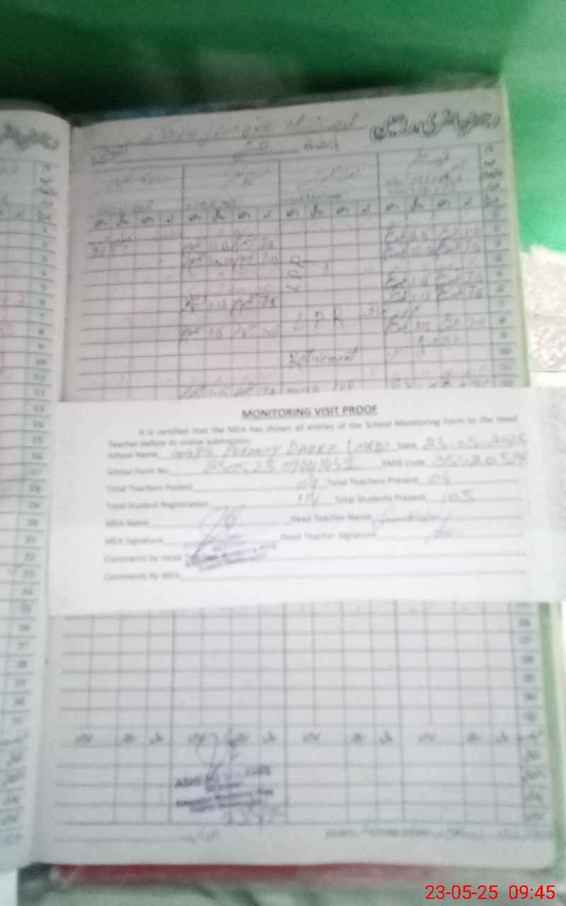 | Attendance Register | Head Teacher | MEA with School | Visit Proof |