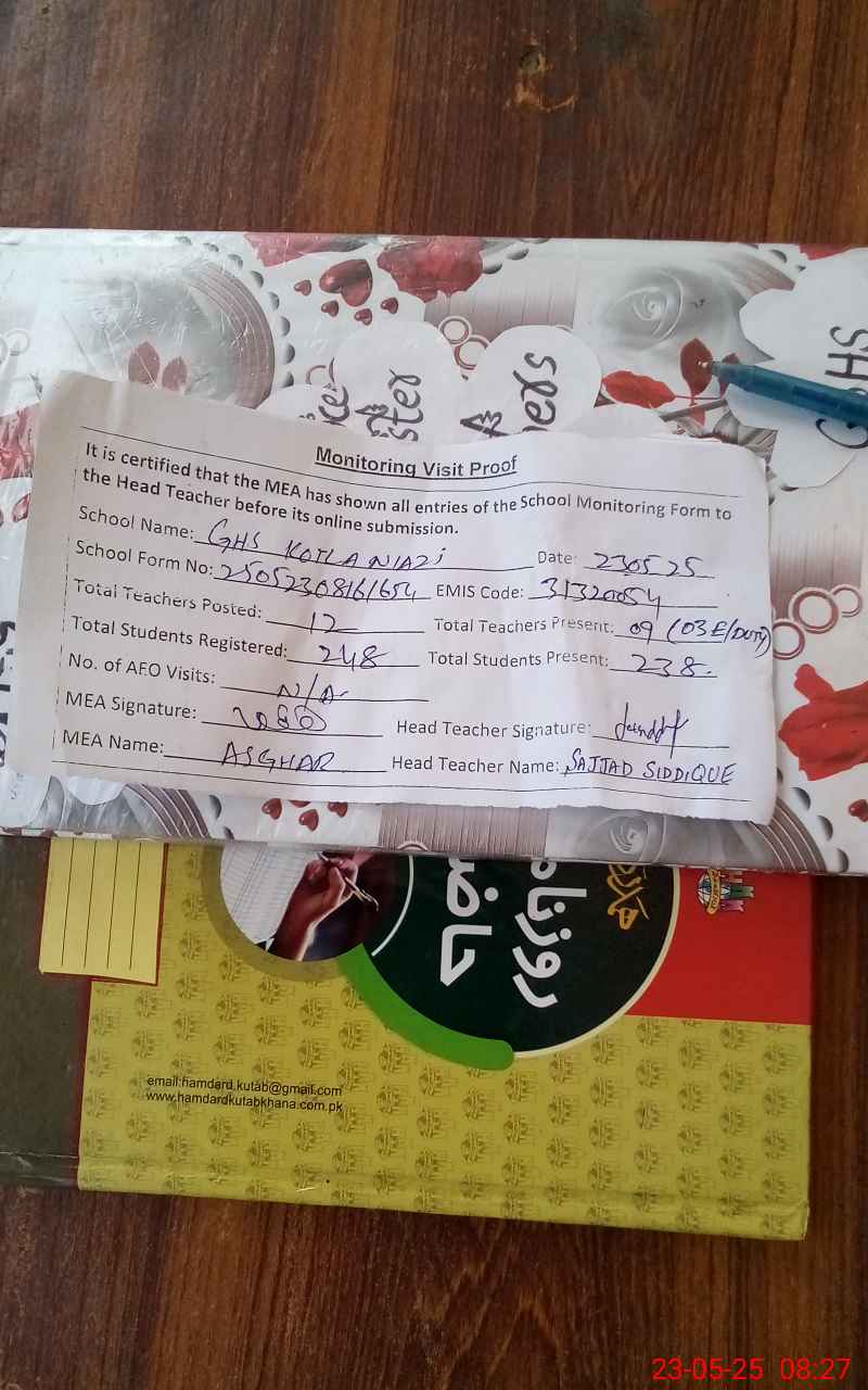 | EMIS Code: 31320054 | Name of School: GHS KOTLA NIAZI | |||