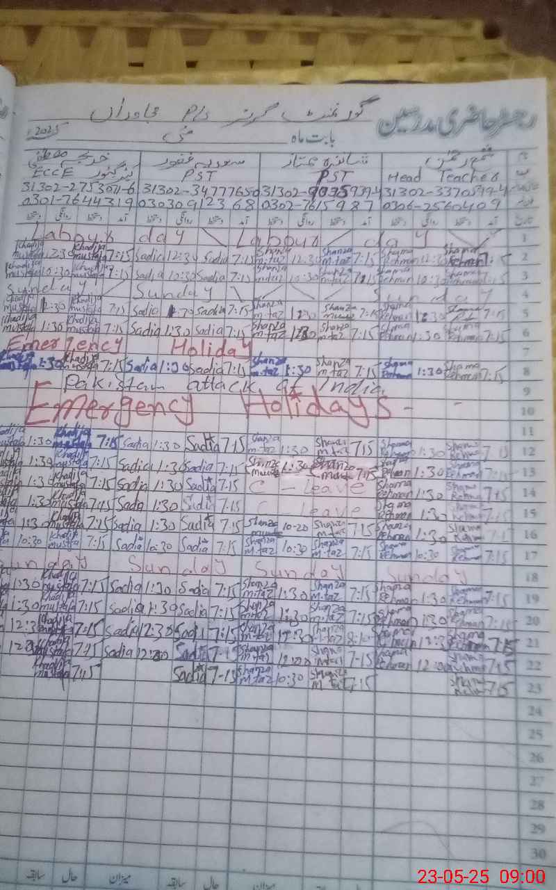 | Name: SH**** SU**** Designation: (School Headmaster's/Headmistress's) PST Phone/Cell Number: 03**** |