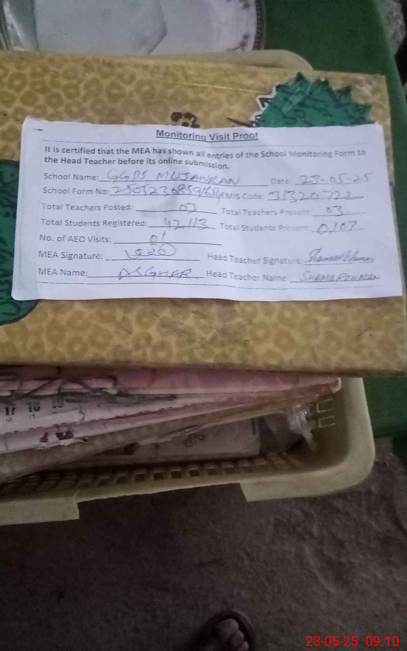 | Attendance Register | Head Teacher | MEA with School | Visit Proof |