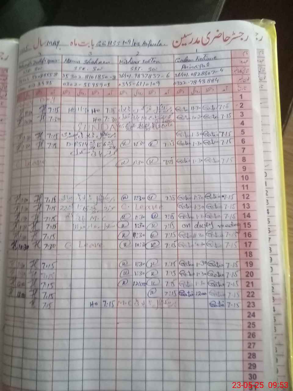 | CNIC | Full Name | Designation | R/C | Absence During Last Calender Month |