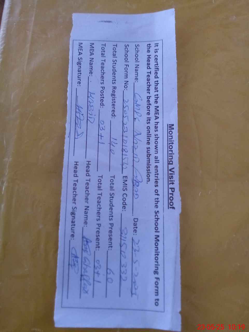 | EMIS Code: 31150332 | Name of School: GMPS NAZIR ABAD | |||