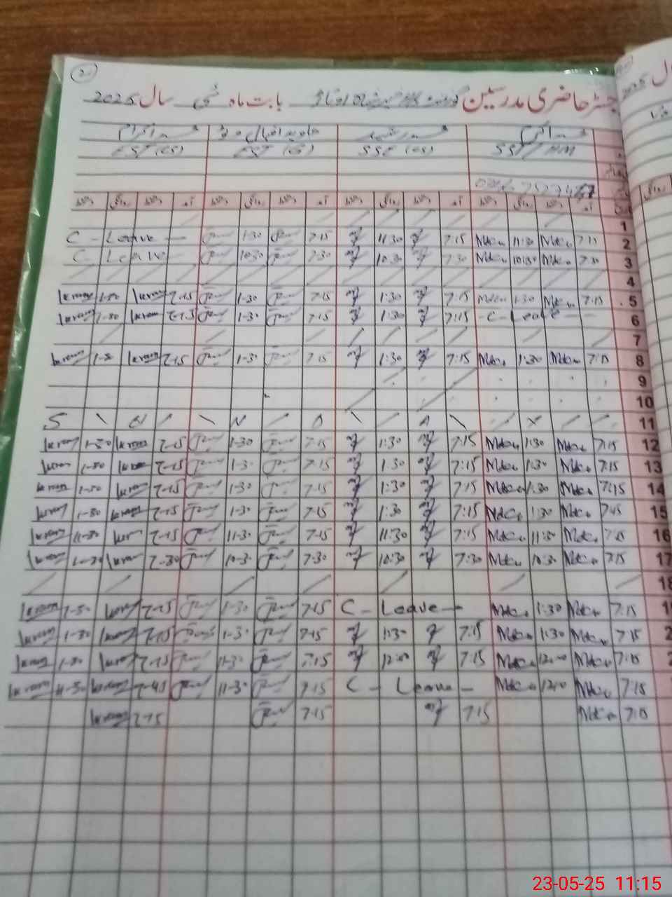 | CNIC | Full Name | Designation | R/C | Absence During Last Calender Month |