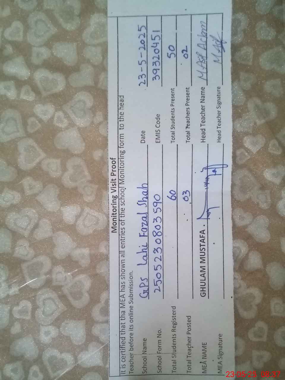 | EMIS Code: 39320451 | Name of School: GPS LAHI FAZAL SHAH | |||