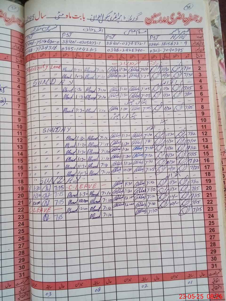 | Name: Um**** Ya**** Designation: (School Headmaster's/Headmistress's) PST Phone/Cell Number: 03**** |
