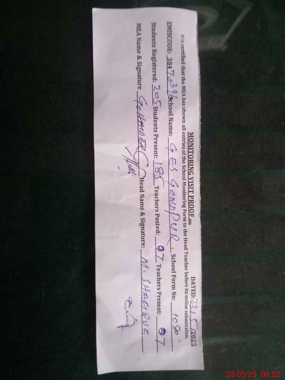 | EMIS Code: 38470396 | Name of School: GES GOND PUR | |||