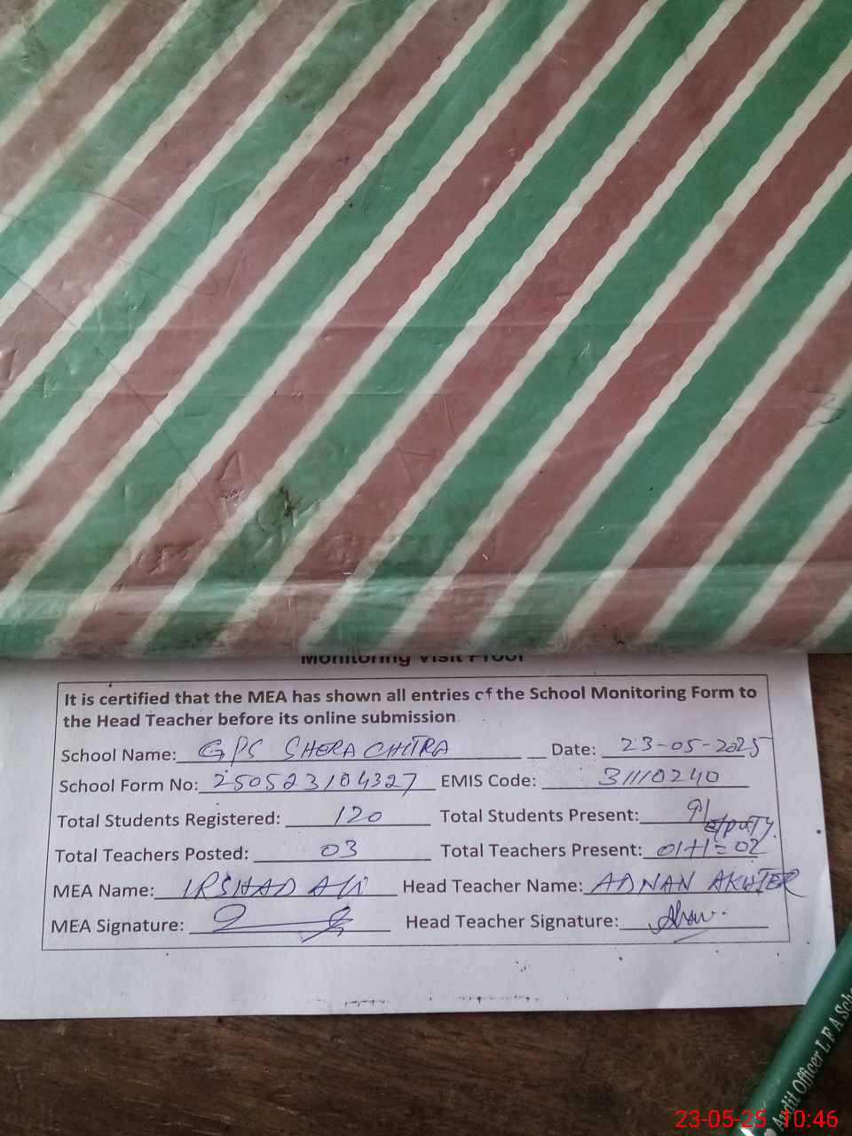 | EMIS Code: 31110240 | Name of School: GPS SHERA CHITRA | |||