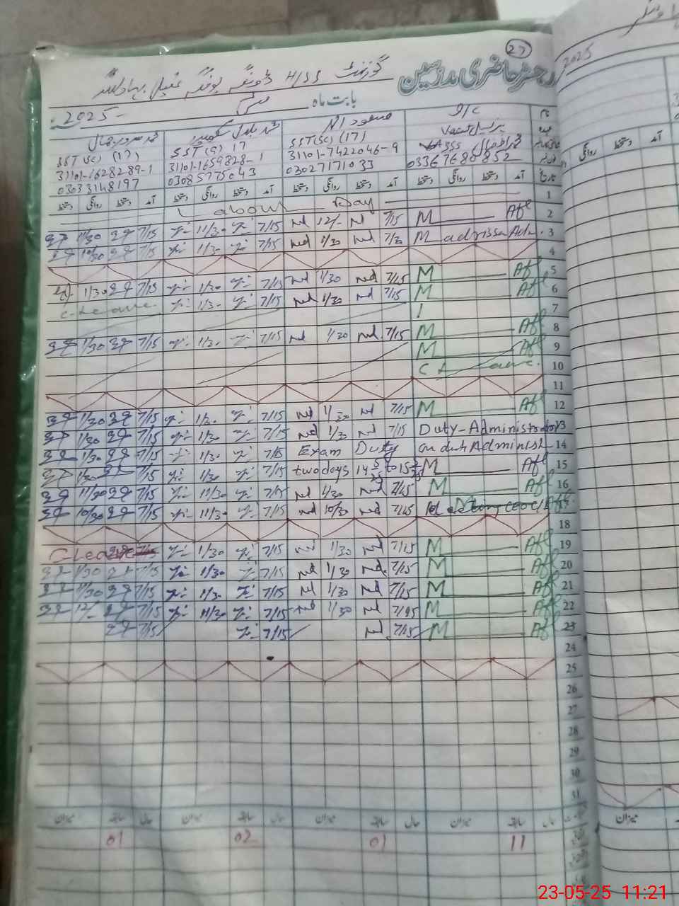 | 31**** | Mu**** Sh**** Ar**** | SST | Regular | 0 | 0 | 0 | 0 | 0 | 0 | 0 | 0 | 0 | Exam Duty |