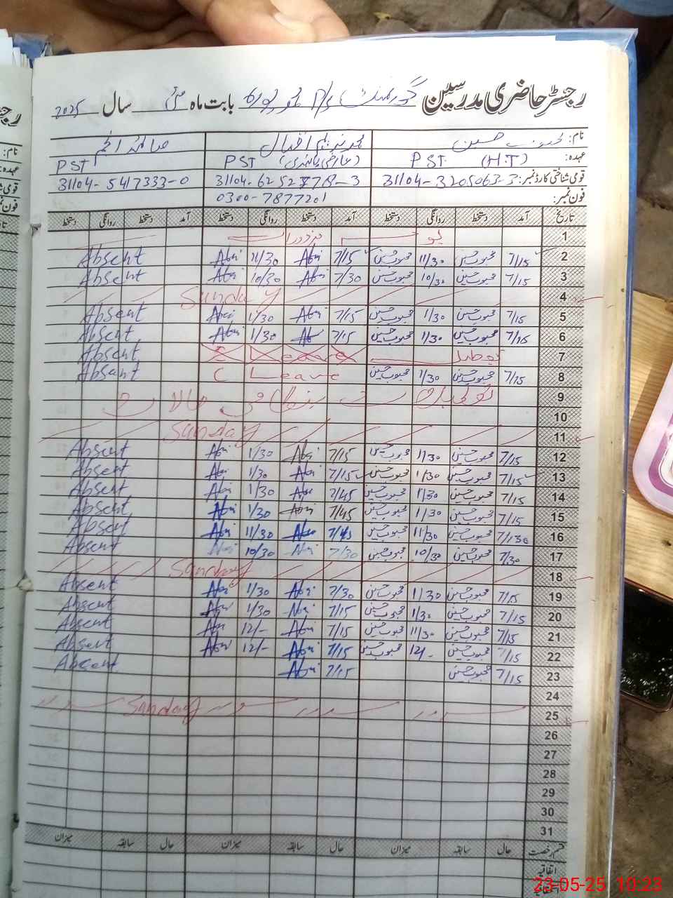 | Name: AB**** RA**** Designation: (School Headmaster's/Headmistress's) PST Phone/Cell Number: 03**** |