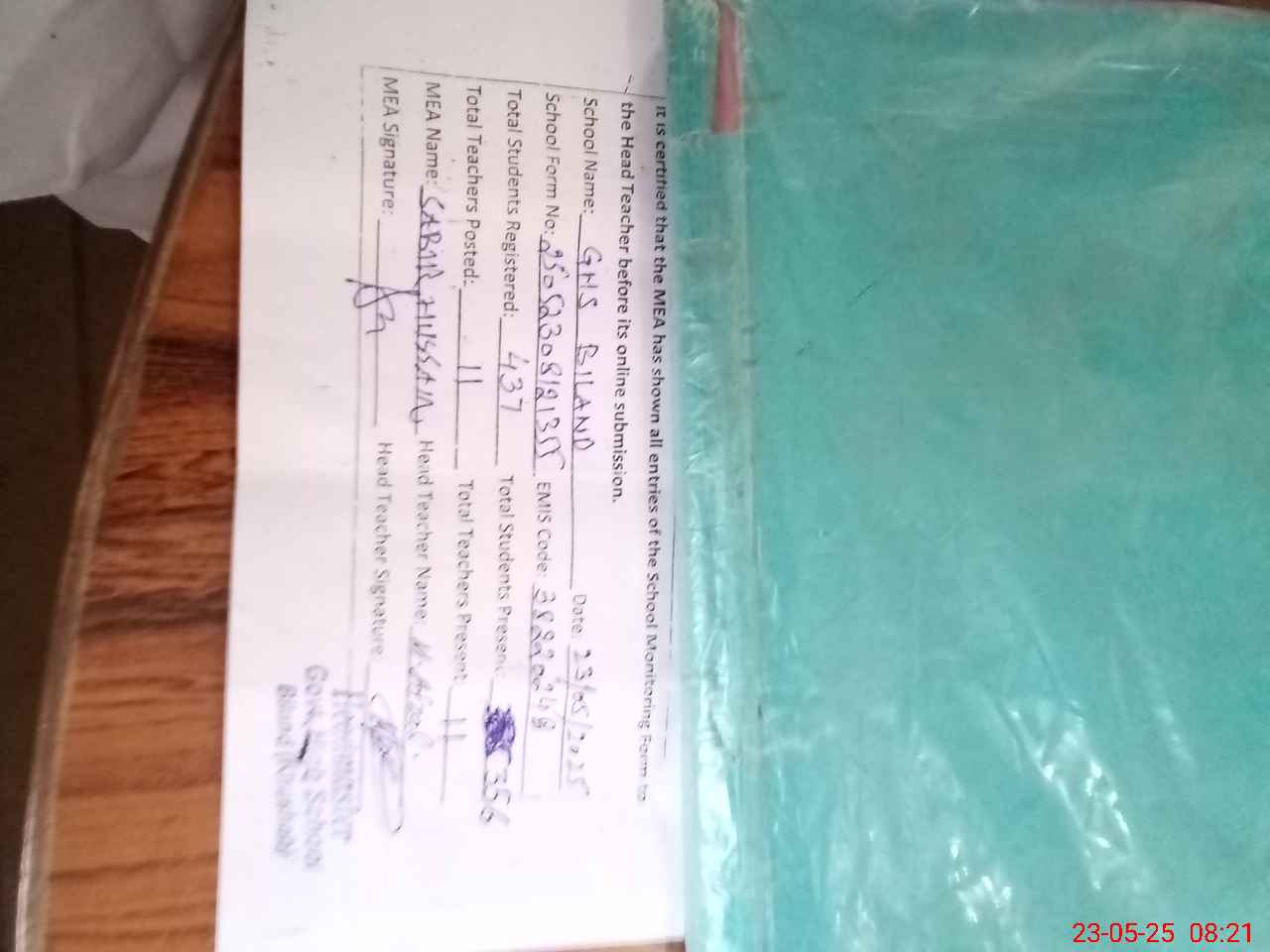 | EMIS Code: 38220248 | Name of School: GHS BILAND | |||