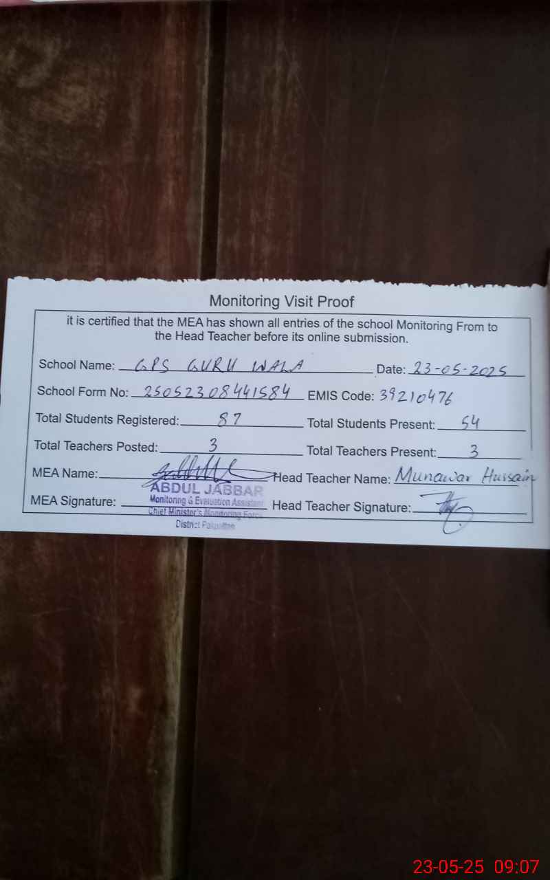 | EMIS Code: 39210476 | Name of School: GPS GURU WALA | |||