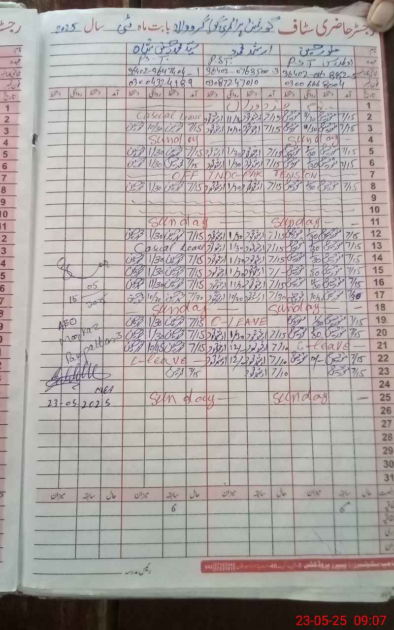 | Name: Mu**** Hu**** Designation: (School Headmaster's/Headmistress's) PST Phone/Cell Number: 03**** |