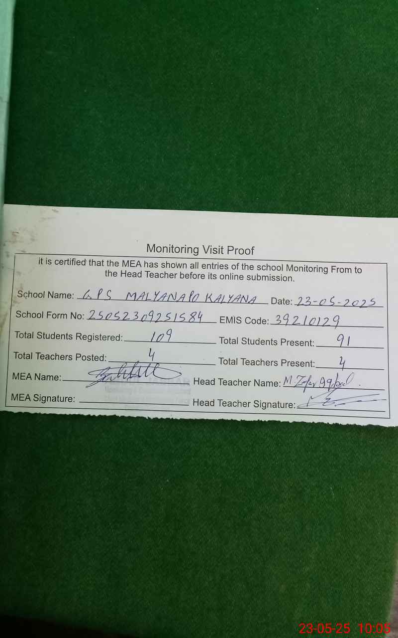| EMIS Code: 39210129 | Name of School: GPS MALYANA P.O KALYANA | |||