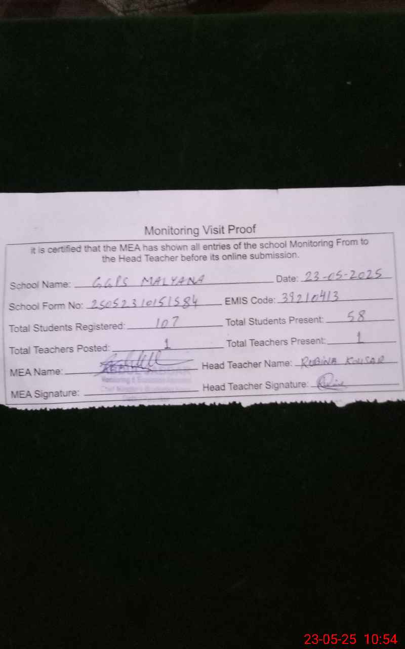 | EMIS Code: 39210413 | Name of School: GGPS MALYANA | |||